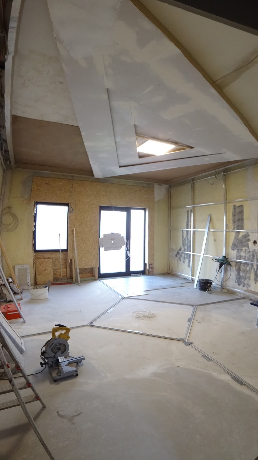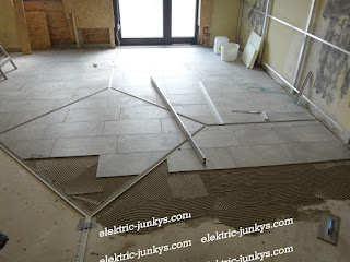 Pat the Tiles carefully down in position "XYZ" all directions use the Spirits level in X and Y direction. After you’ve placed all the Tiles with the Tracks let it rest again for at least 24hrs.